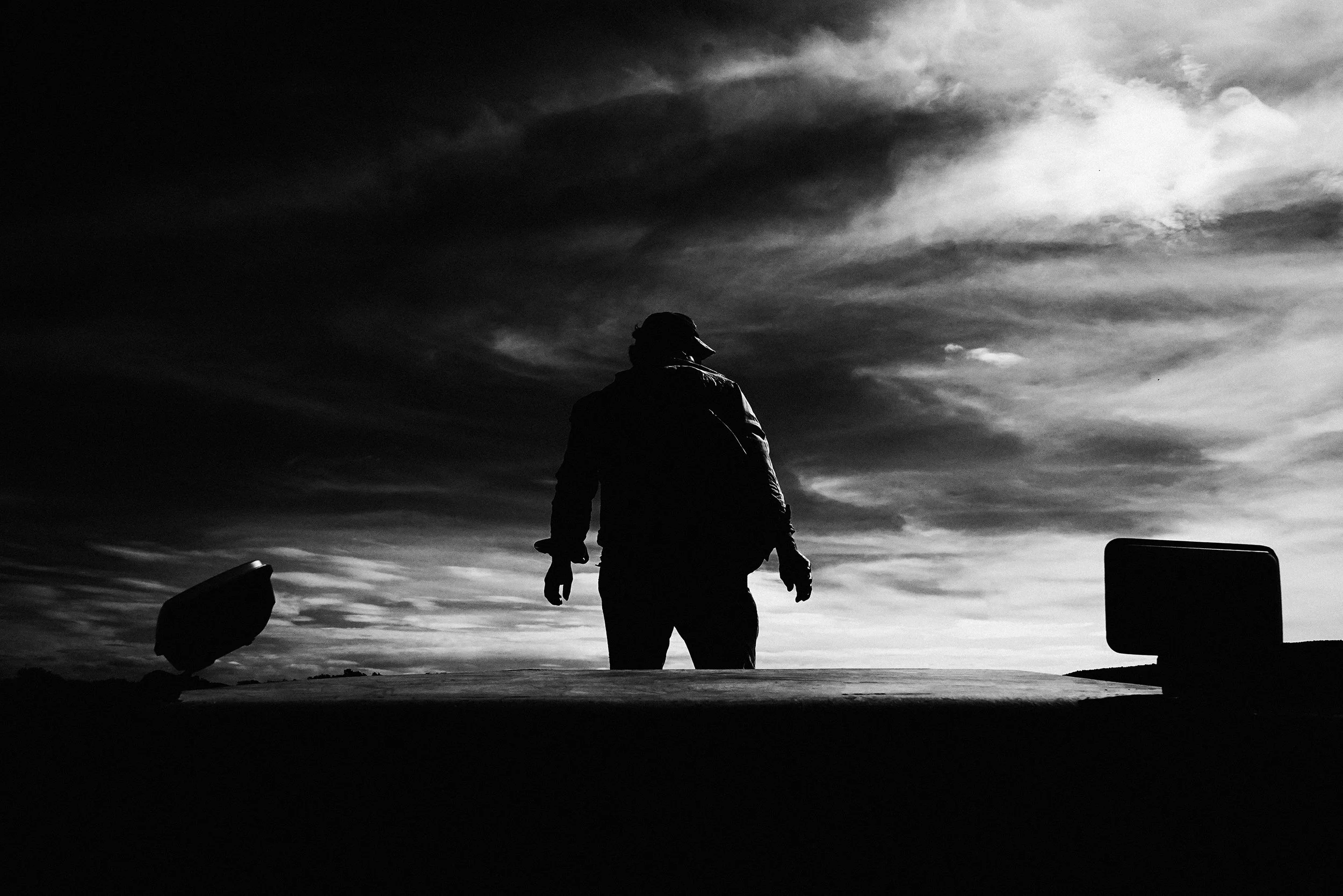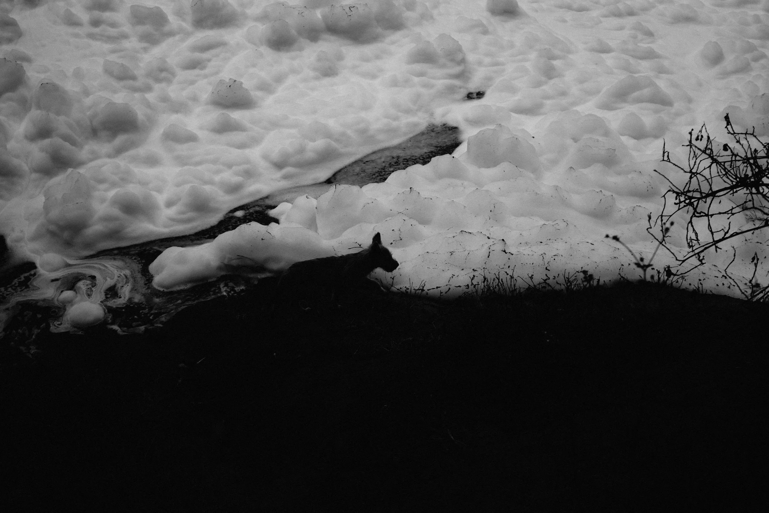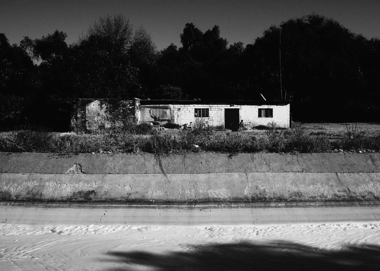 Las composiciones de Falcón enfatizan esta tensión entre belleza y devastación. El formato en blanco y negro de alto contraste evoca la iluminación dramática de la cinematografía clásica mientras revela la cruda realidad de la contaminación. La manera en que el agua aparece en sus imágenes —ya sea como superficie reflectante o como masa indistinguible de contaminación— refuerza las contradicciones inherentes a la percepción del paisaje. El juego entre luz y oscuridad, movimiento y quietud, invita al espectador a moverse entre la nostalgia y la crisis.